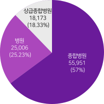 *분석기간동안 폐렴을 진단한 의료기관의 병원급 이상 종별 분포입니다.